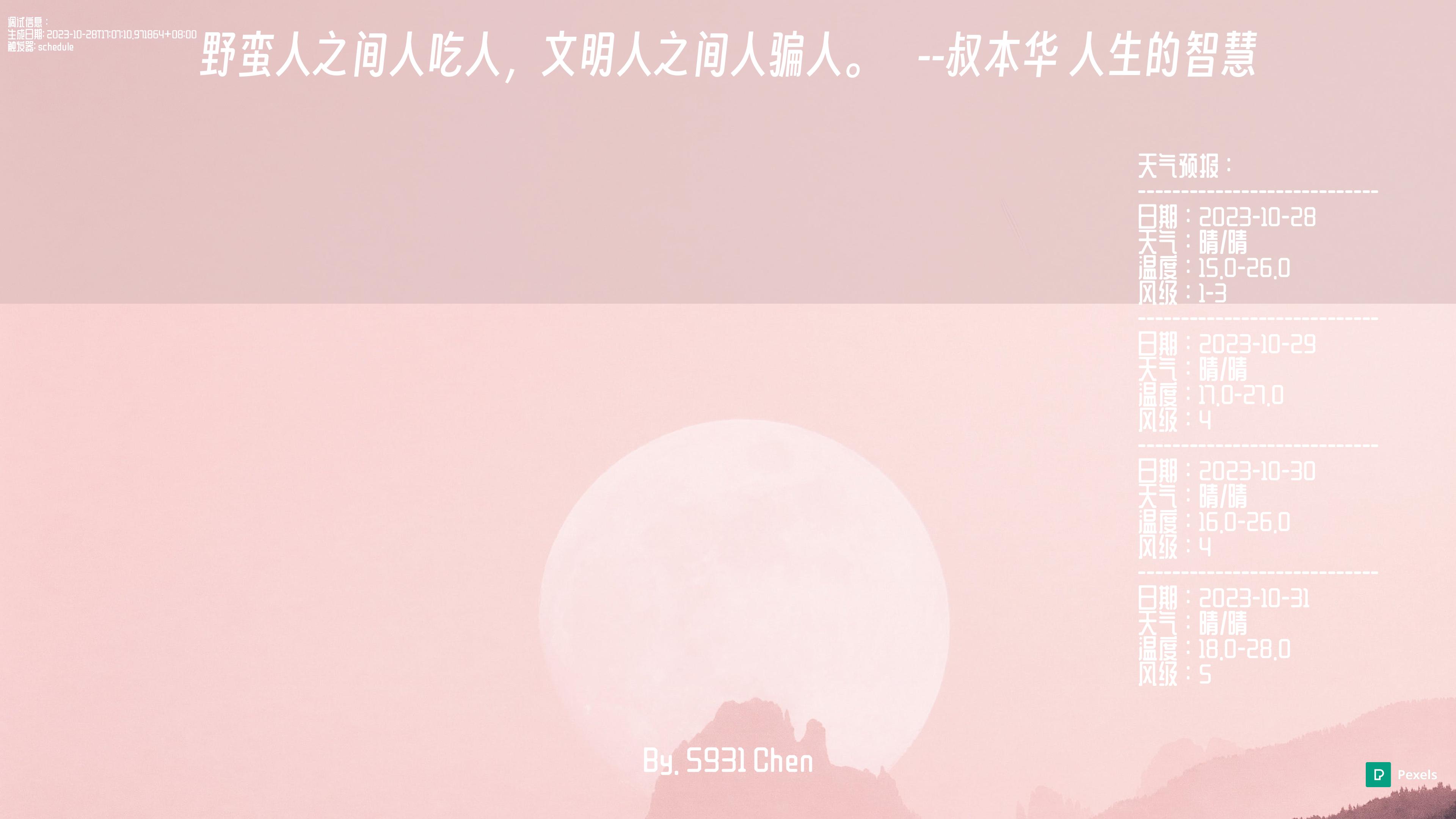 | 2023-06-23 | 2888333 | 弱小和无知,不是生存的障碍,傲慢才是。 | 图片链接 | schedule |