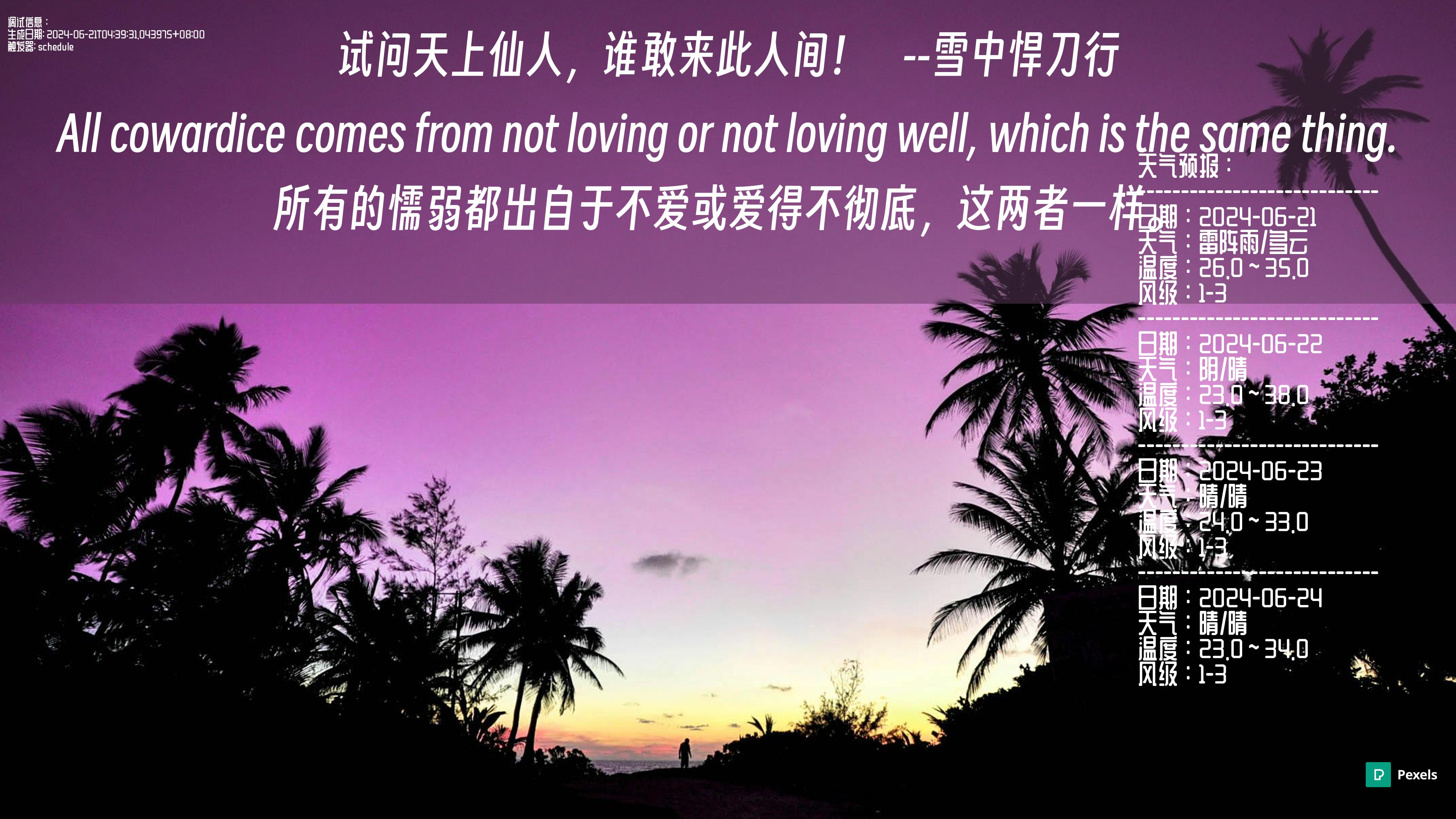 | 2023-06-26 | 772520 | 即使人生是一场悲剧,也应该笑着把人生演完。 | 图片链接 | schedule |