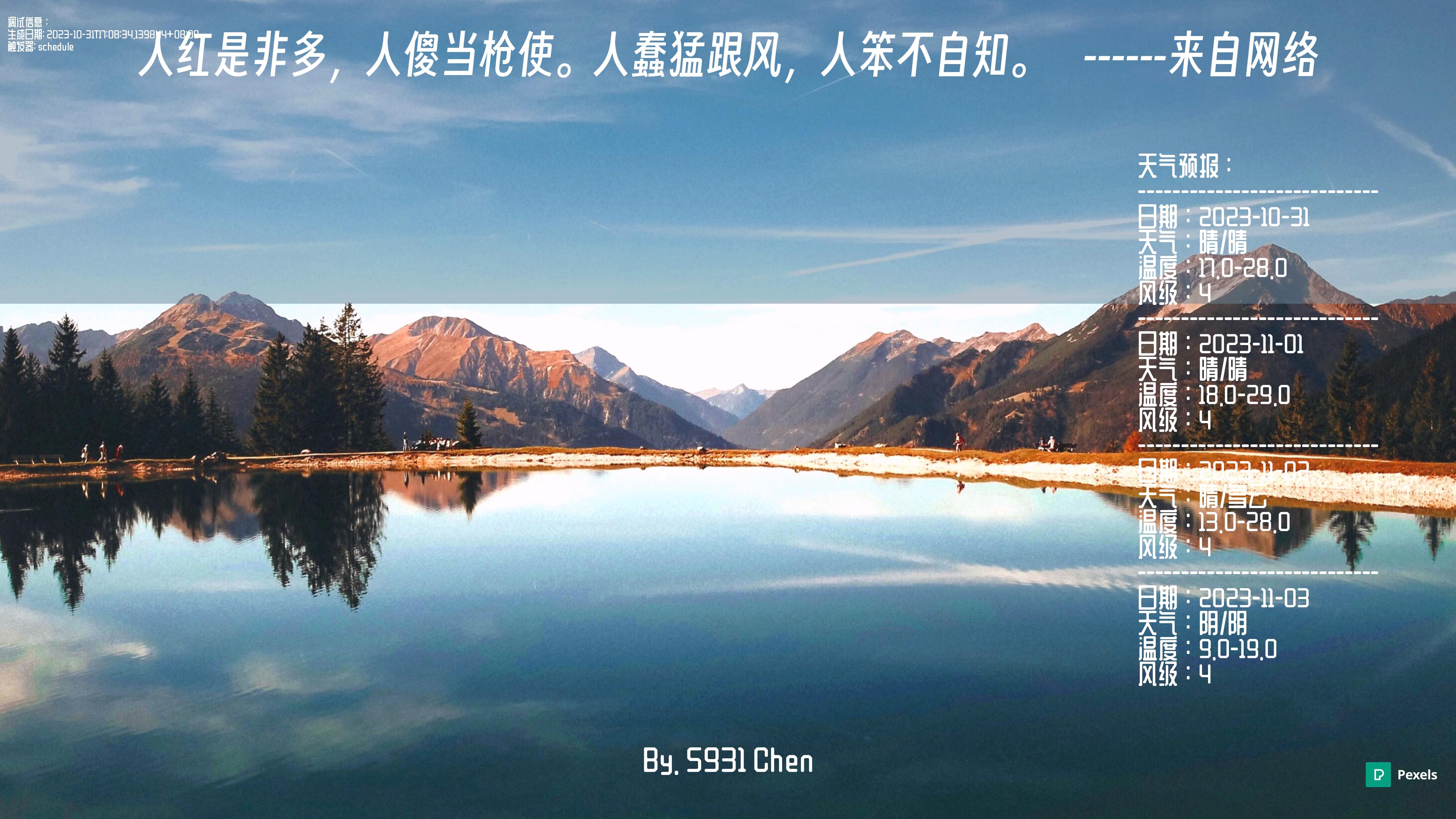 | 2023-07-01 | 80453 | 山不在高,有仙则名。水不在深,有龙则灵。 | 图片链接 | schedule |